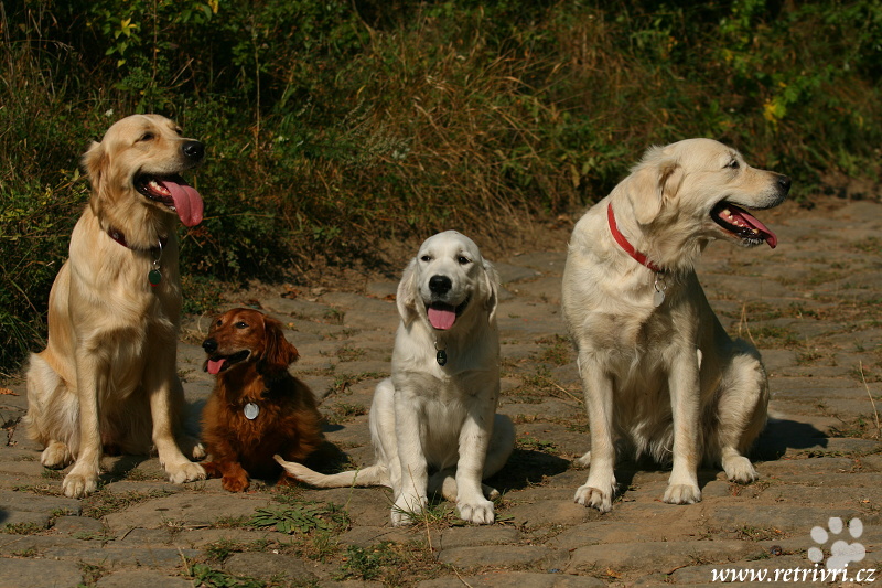 28.08.2009Ve čtvrtek se na nás odpoledne přijela podívat Bocinka s paničkou Evou a starší zlaťandou Laruškou. Holky přijely potrénovat na výstavu přímo k nám na cvičák. Jsou to holky šikovné, šlo jim to skoro samo. Na cvičáku se také potkaly s Boci bráškou, s Bernym (Bojárkem). Holky se zdržely do druhého dne, a pak mazaly domů se vyspat a nachystat na výstavu. Držíme palce!!! Eva fotila, a tak se s vámi podělíme o několik pěkných momentů z návštěvy..